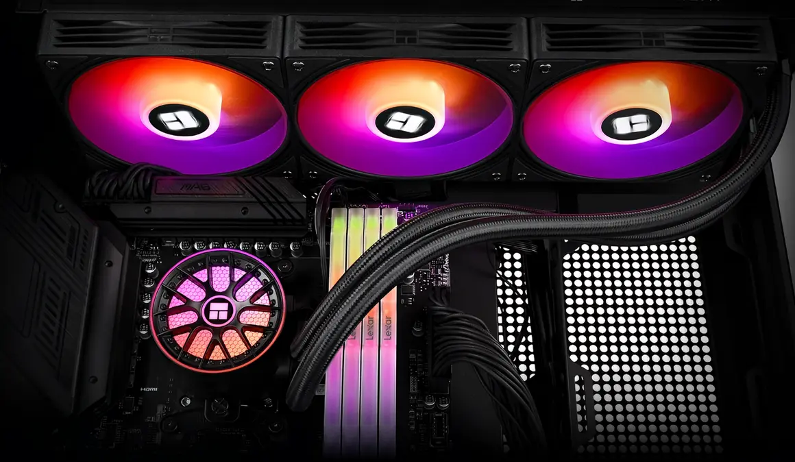 - Enfriador AIO avanzado: El enfriador de CPU AIO utiliza el cabezal de la bomba de cuarta generación + un disipador de calor de láminas de aluminio negro con especificaciones y tamaños de radiador 360 + una línea de agua de red web protectora + un ventilador ARGB de 120 mm en la configuración estándar y se esfuerza por proporcionar un enfriador de agua todo en uno con baja vibración, alta disipación de calor, alta vida útil y diseño estético a crear