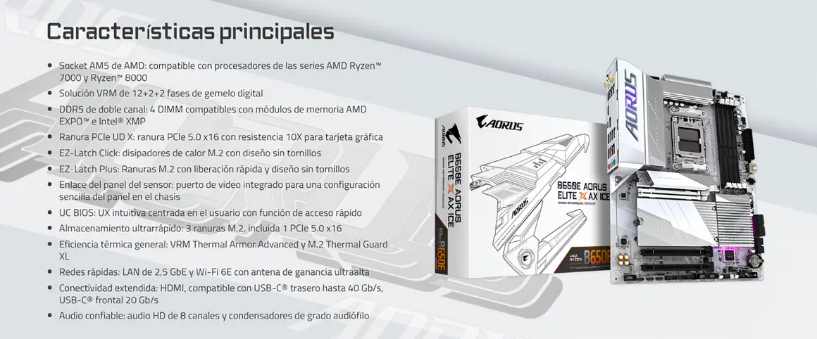 - Placa Base Gigabyte B650E AORUS ELITE X ICE WiFi 6E
