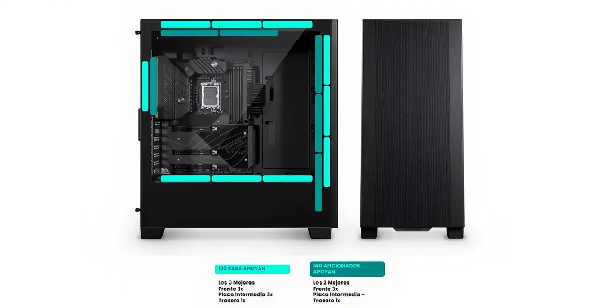 - Ventiladores D-RGB M25-140 Incluidos: Experimenta la iluminación vibrante y personalizable con los 4 ventiladores D-RGB M25-140 incluidos. Estos ventiladores no solo ofrecen un rendimiento excepcional, sino que también añaden un toque estético único a tu sistema, proporcionando efectos de iluminación impresionantes.