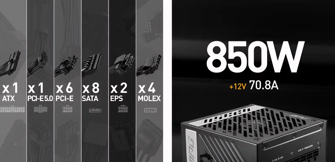 Fuente Alimentación MSI 850 Watios PCIE5 80 Plus Gold Modular